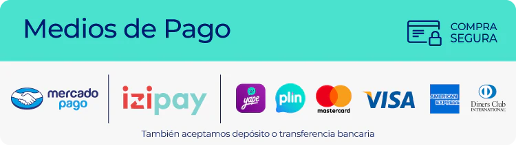 Aceptamos pagos con tarjeta de crédito/débito, transferencias bancarias y pagos en efectivo en nuestra tienda física.