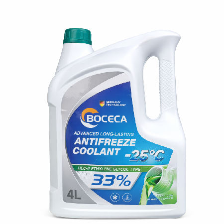 Boceca Coolant 33% Verde es un refrigerante anticongelante de larga duración con tecnología alemana, formulado con etilenglicol HEC-II al 33%. Protege el sistema de enfriamiento contra congelamiento hasta -25°C, corrosión y sobrecalentamiento. Producto listo para usar, no necesita agregar agua. Ideal para mantener el óptimo rendimiento del motor y prolongar la vida útil del sistema de refrigeración.