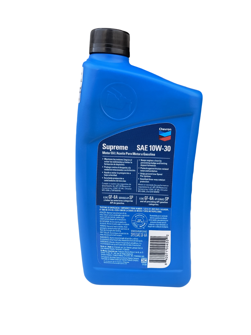 Chevron Supreme 10W-30 – Aceite Multigrado de Alto Desempeño para Motores Gasolina / 946 mL
