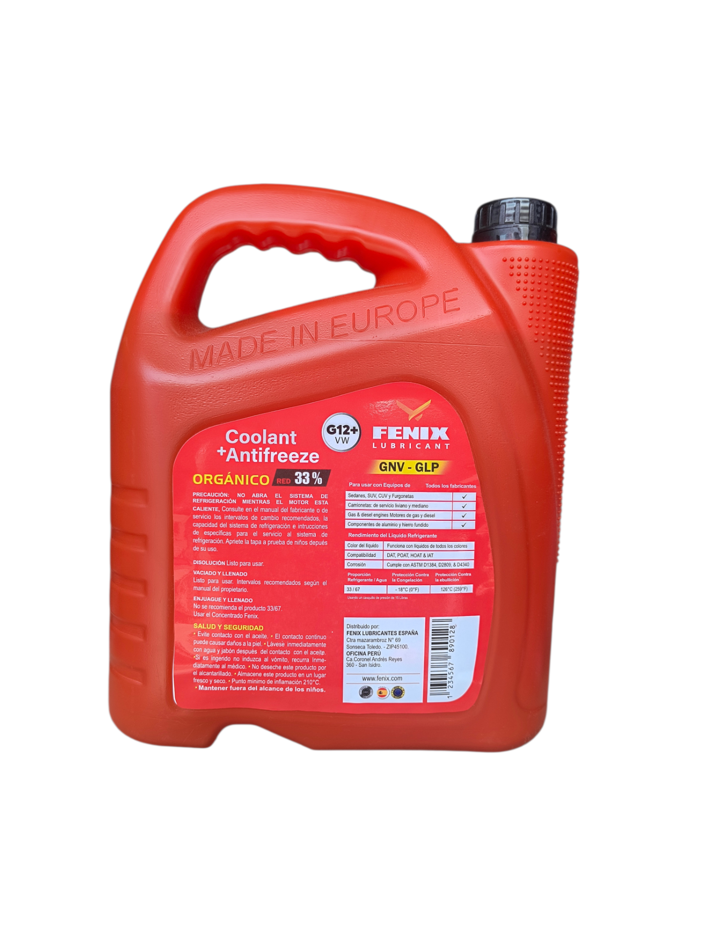 Fenix Coolant 33% Rojo es un refrigerante formulado para proteger el sistema de enfriamiento del motor frente al sobrecalentamiento, la corrosión y la formación de óxido. Su concentración al 33% asegura un adecuado control térmico y un funcionamiento eficiente del motor en condiciones normales de operación.