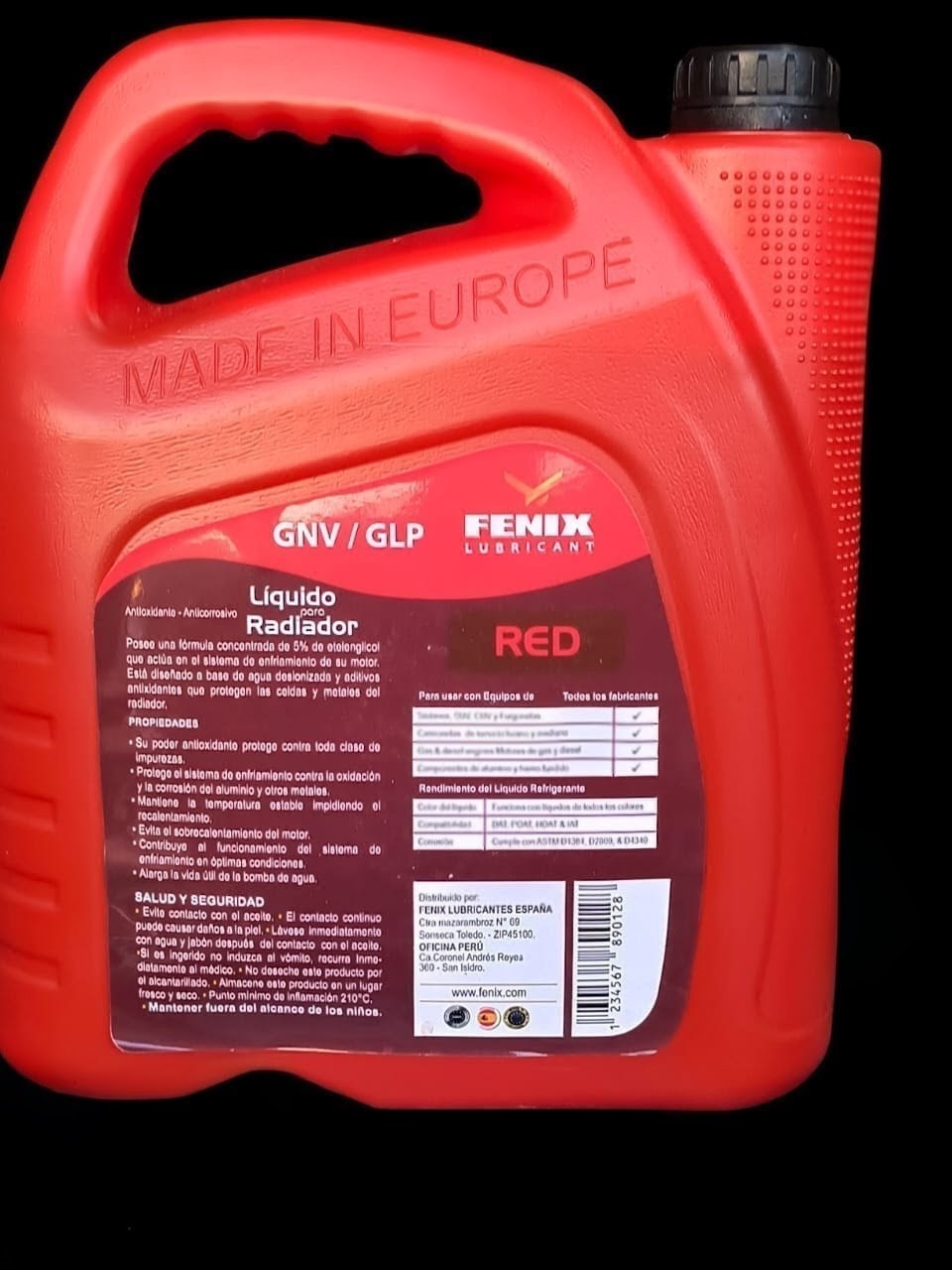 Fenix Coolant 5% Rojo es un refrigerante de mantenimiento preventivo, formulado con una concentración del 5% de aditivos inhibidores de corrosión. Está diseñado para brindar protección básica y continua al sistema de enfriamiento del motor, ayudando a prevenir la formación de óxido, sarro y depósitos minerales.