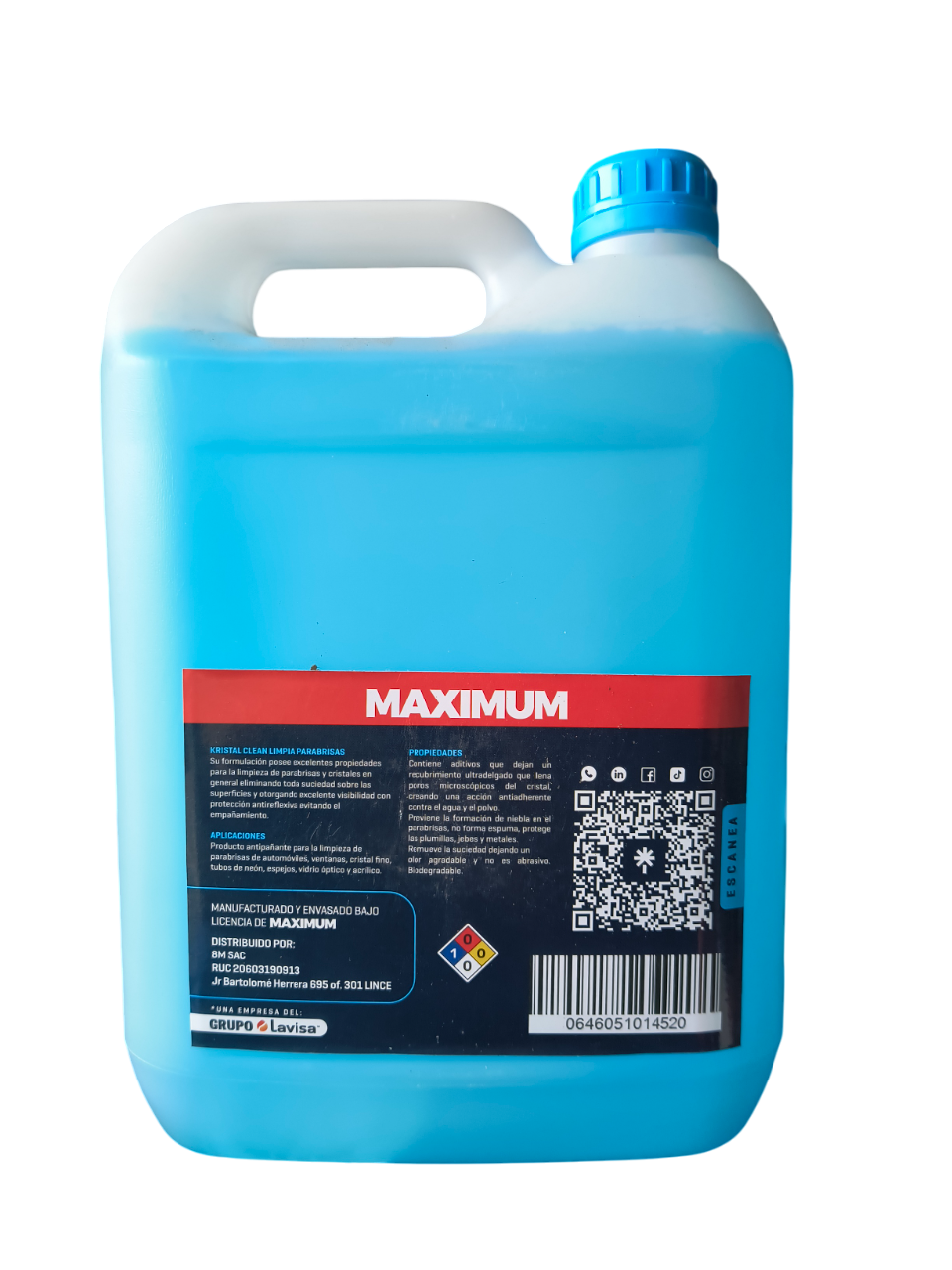 Maximum Limpiaparabrisas elimina eficazmente suciedad, insectos y residuos de la luna delantera, garantizando máxima visibilidad. Su fórmula también ayuda a prevenir la congelación del líquido en climas fríos, ideal para todo tipo de vehículos.