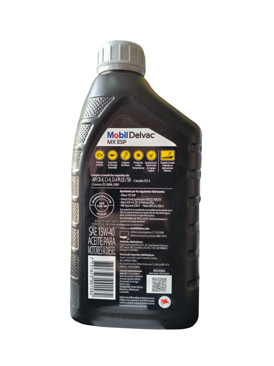 Mobil Delvac MX ESP 15W-40 proporciona máxima protección y limpieza para motores diésel modernos con sistemas de control de emisiones. Su tecnología avanzada "Enhanced System Protection" reduce el desgaste, controla los depósitos y extiende los intervalos de cambio, ideal para flotas y vehículos pesados.