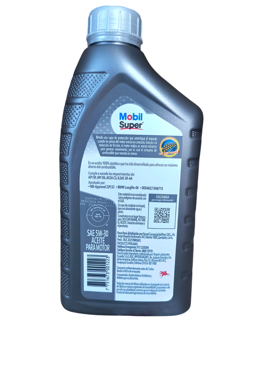 Mobil Super 100% Sintético 5W-30 – Aceite Sintético para Máxima Protección del Motor / 1L