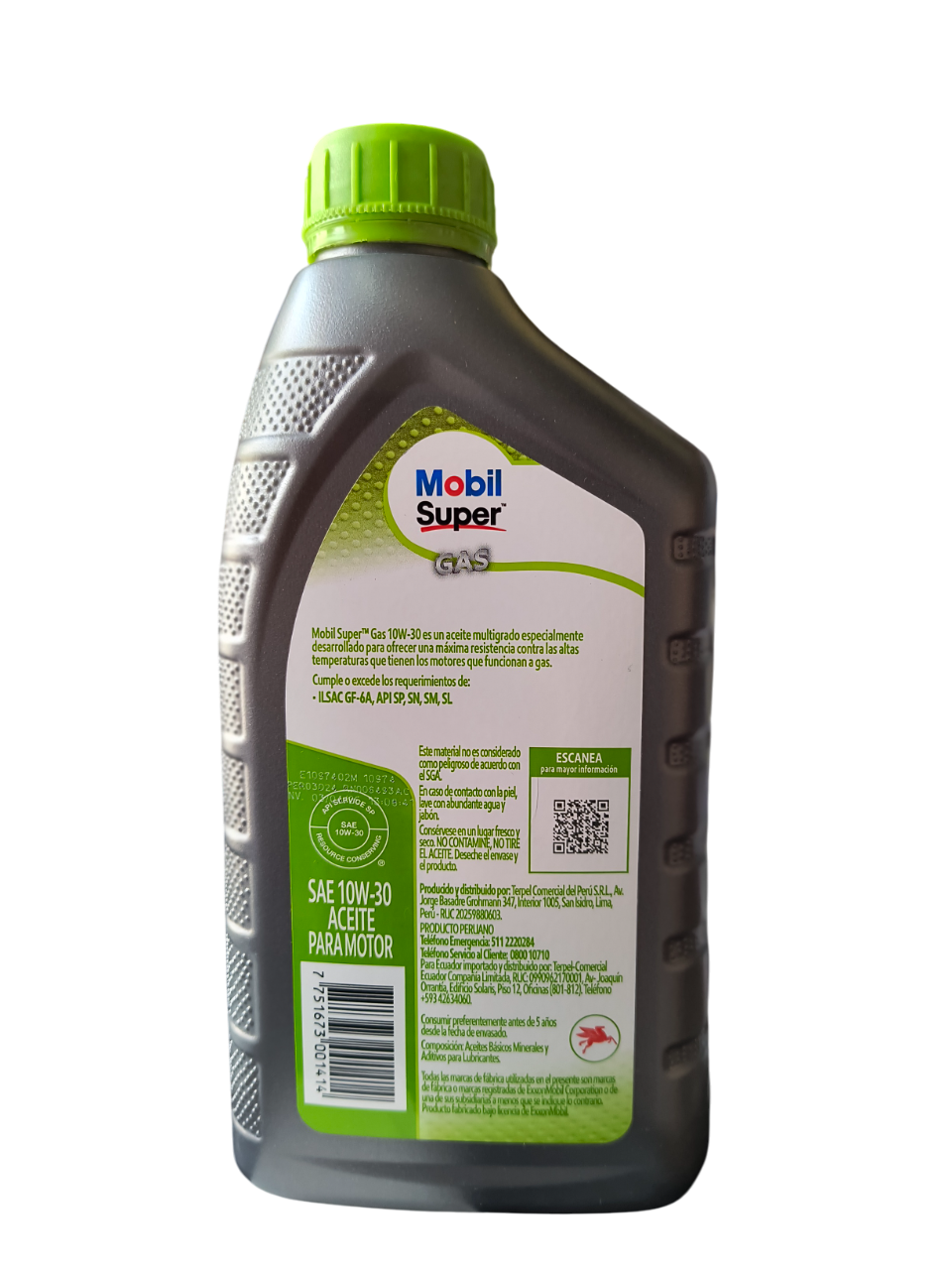 Mobil Super Gas 10W-30 – Aceite Mineral Especializado para Motores a Gas (GLP/GNV) / 1L