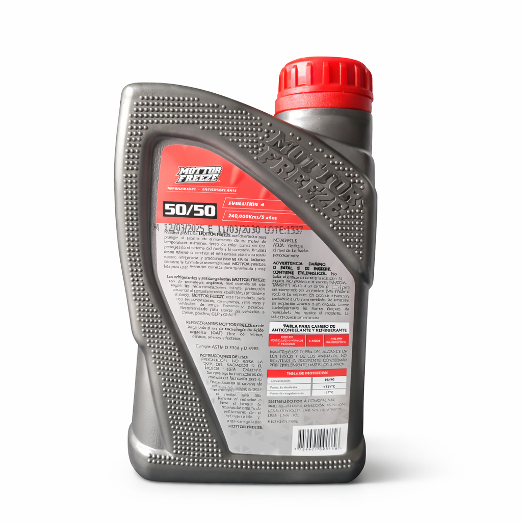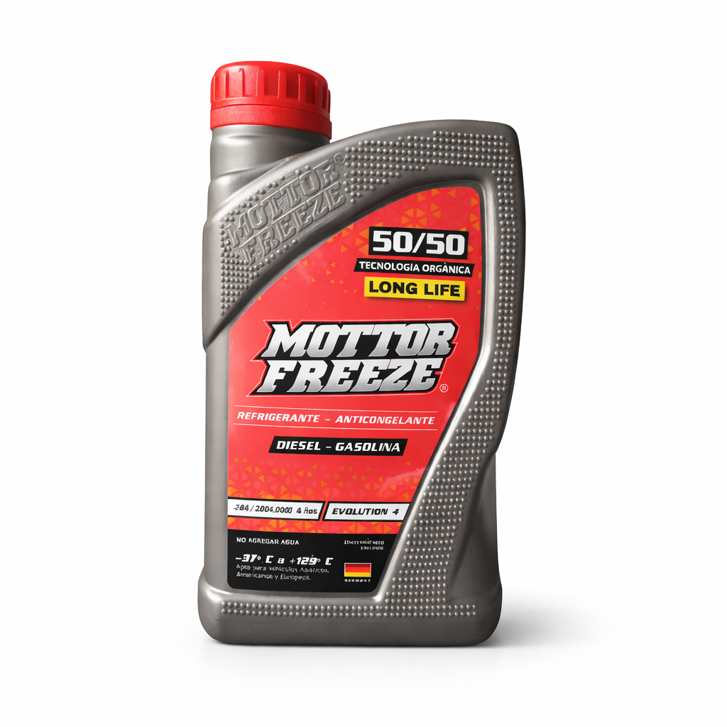 Mottor Freeze 50% Rojo protege eficazmente el sistema de enfriamiento contra la corrosión, cavitación y altas temperaturas. Su fórmula orgánica de larga vida (OAT) ofrece una mezcla lista para usar al 50/50, ideal para motores modernos a gasolina y diésel que requieren alto rendimiento térmico.