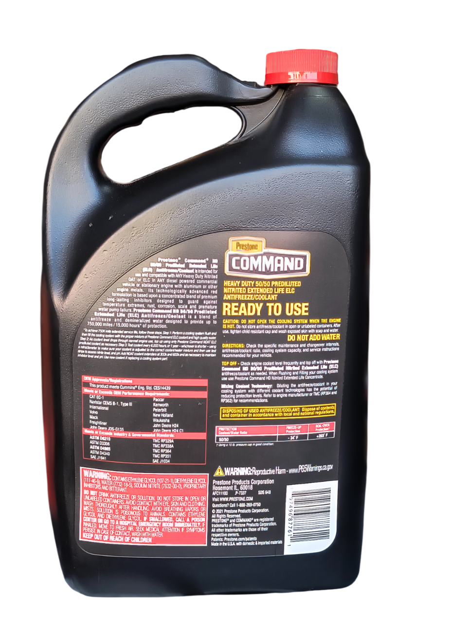 Prestone Command 50% – Refrigerante de Servicio Pesado Listo para Usar (50/50) / 3.78 L