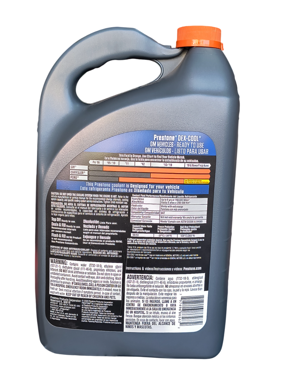 Prestone GM Vehicles 50% – Refrigerante Dex-Cool® Listo para Usar (50/50) / 3.78 L