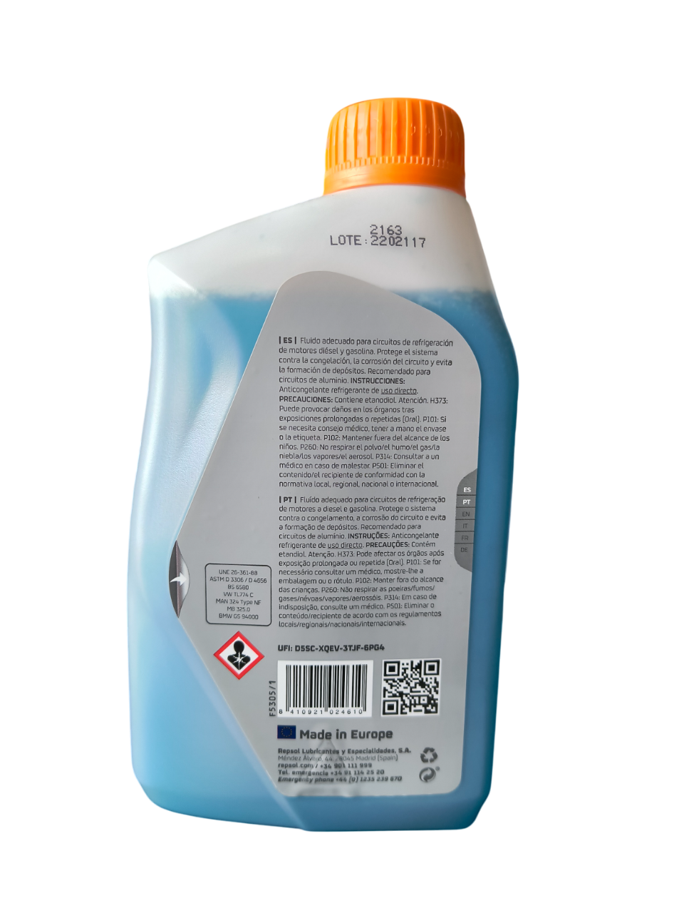 Repsol Guard 50% Azul protege eficazmente el sistema de enfriamiento contra la corrosión, sobrecalentamiento y congelación. Su fórmula premezclada lista para usar es compatible con motores de gasolina y diésel, ofreciendo un rendimiento seguro y duradero en vehículos modernos.
