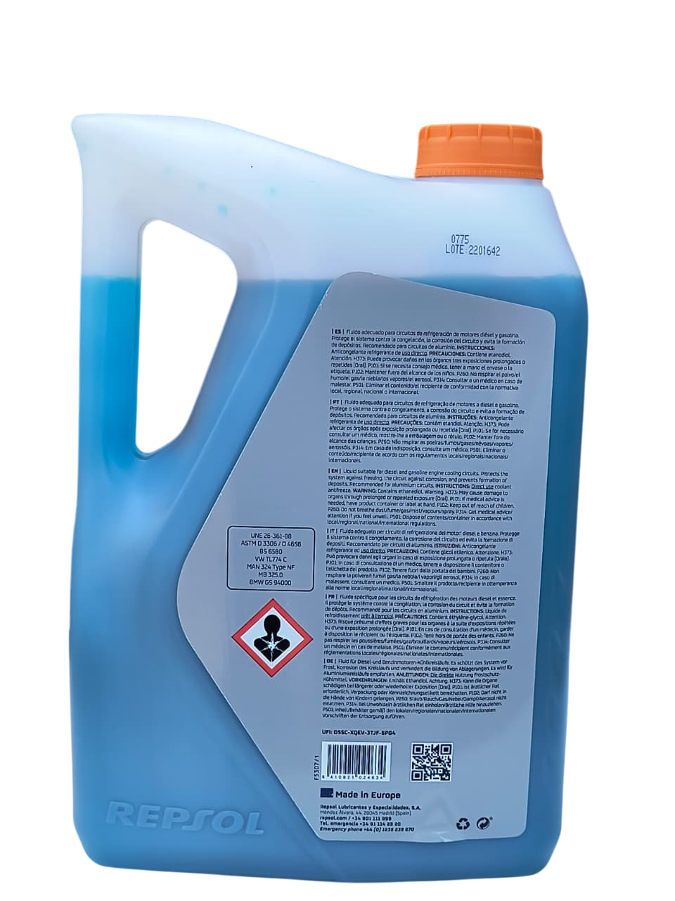 Repsol Guard 50% Azul protege eficazmente el sistema de enfriamiento contra la corrosión, sobrecalentamiento y congelación. Su fórmula premezclada lista para usar es compatible con motores de gasolina y diésel, ofreciendo un rendimiento seguro y duradero en vehículos modernos.