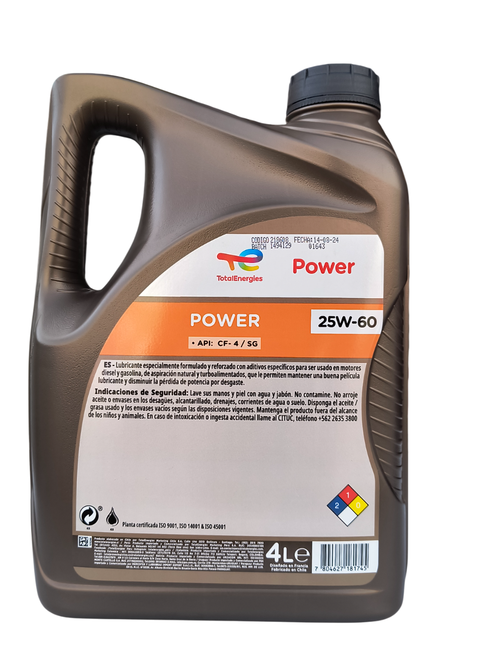 Total Power 25W-60 – Aceite Mineral de Alta Viscosidad para Motor Gasolina / 4L