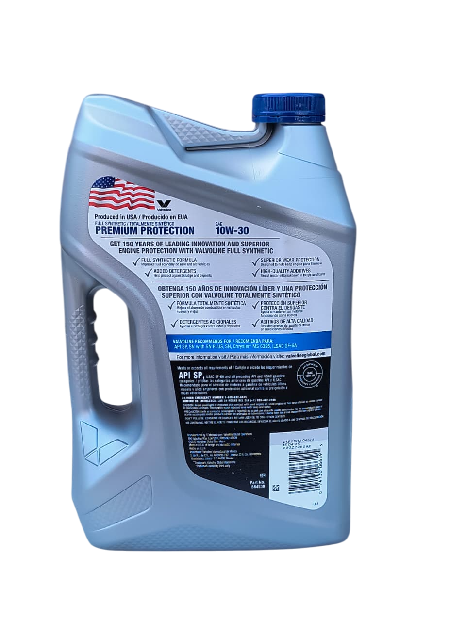 El Valvoline 10W-30 Full Sintético es un lubricante 100% sintético de alto rendimiento, diseñado para motores modernos gasolina y diésel, incluyendo turbo e inyección directa. Proporciona excelente protección contra el desgaste, la oxidación y la formación de depósitos, asegurando arranques en frío confiables, eficiencia de combustible y mayor durabilidad del motor. Cumple con las normas API SN/CF y ACEA A3/B4, garantizando un rendimiento óptimo en condiciones exigentes de operación.