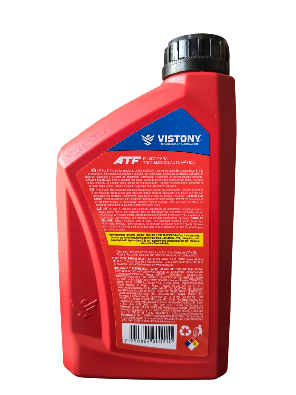 Vistony ATF Tipo F es un fluido de alta calidad diseñado para transmisiones automáticas y diferenciales, asegurando cambios suaves, protección contra desgaste y resistencia a la oxidación. Ideal para vehículos que requieren especificación Tipo F, mantiene un rendimiento confiable en condiciones de uso exigentes.