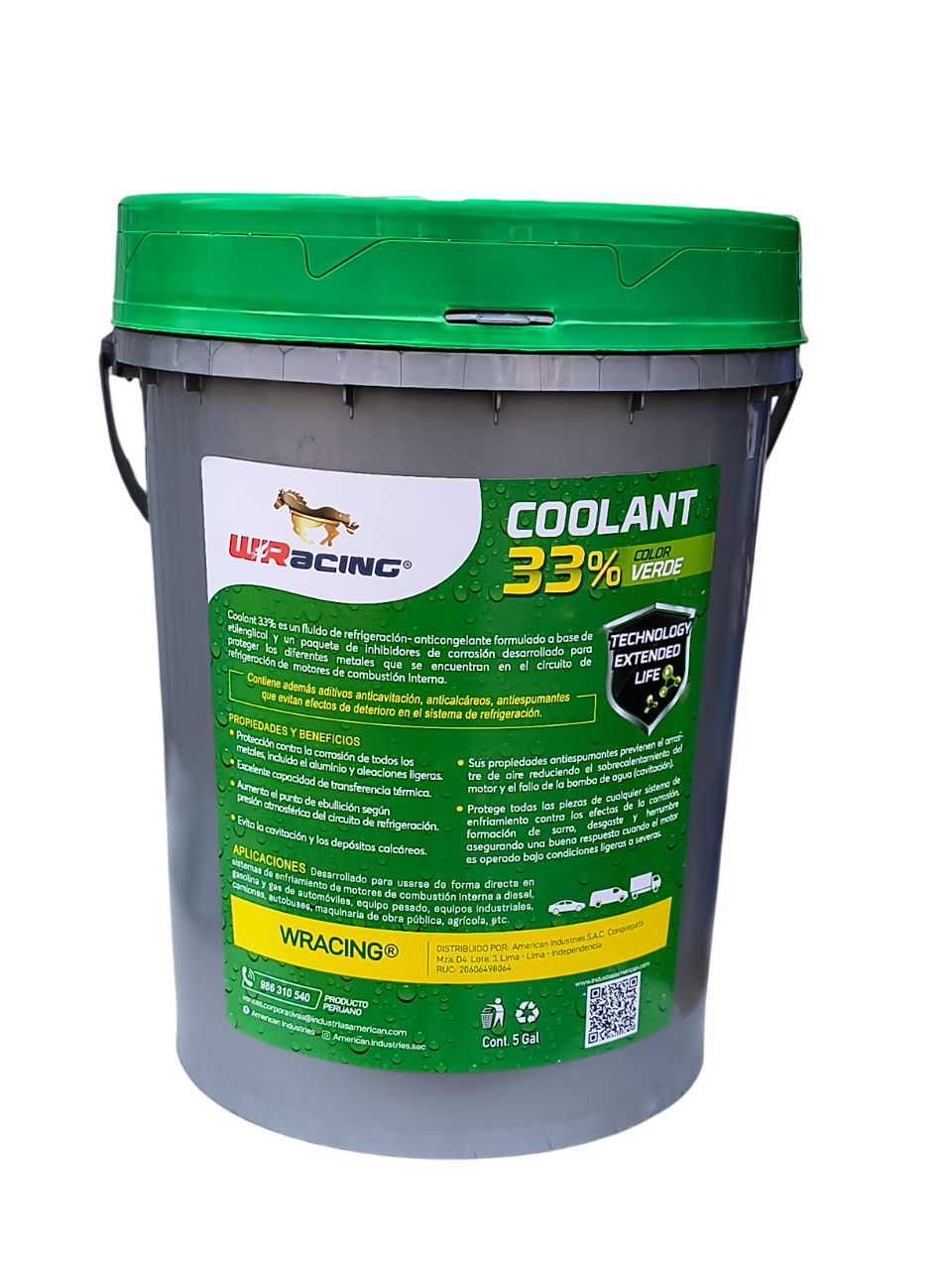 WRacing Coolant 33% Verde protege el sistema de enfriamiento contra la corrosión, el sobrecalentamiento y la formación de incrustaciones. Su fórmula premezclada al 33% garantiza una disipación térmica óptima y un funcionamiento confiable en motores de gasolina y diésel.